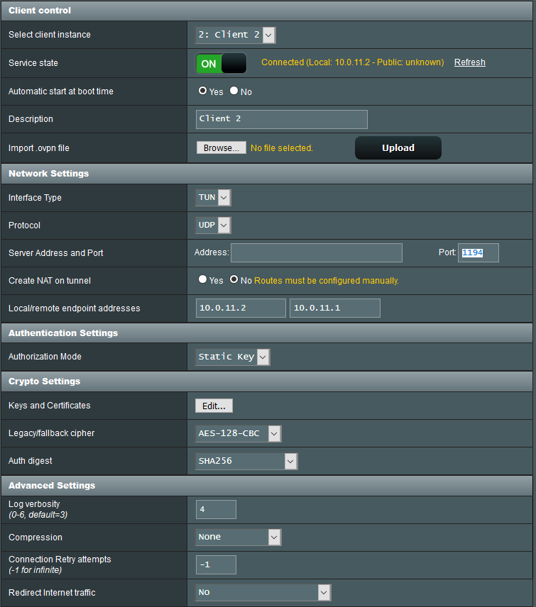 Encryption Algorithm: AES-128-CBC (Must match on client and server)